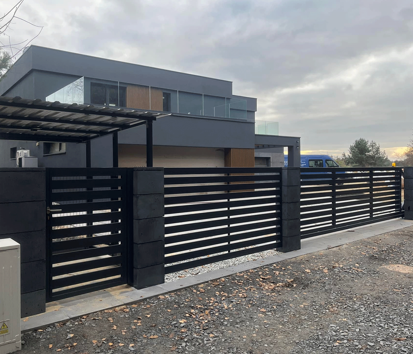• Bramy przesuwne – nowoczesna alternatywa, szczególnie polecana tam, gdzie liczy się oszczędność miejsca. Skrzydło przesuwa się wzdłuż ogrodzenia, co eliminuje potrzebę pozostawiania wolnej przestrzeni do otwierania. To rozwiązanie wygodne i praktyczne, zwłaszcza przy intensywnie użytkowanych wjazdach.